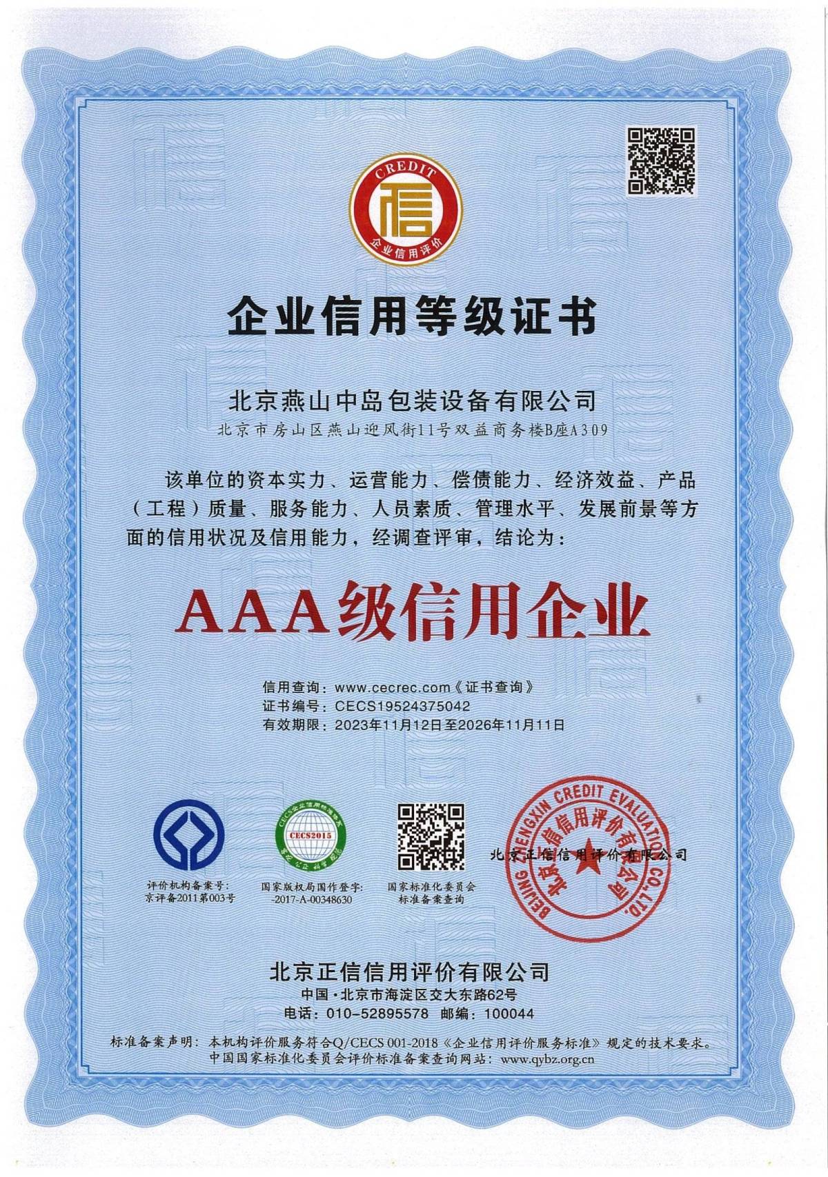 北京燕山中岛包装设备有限公司